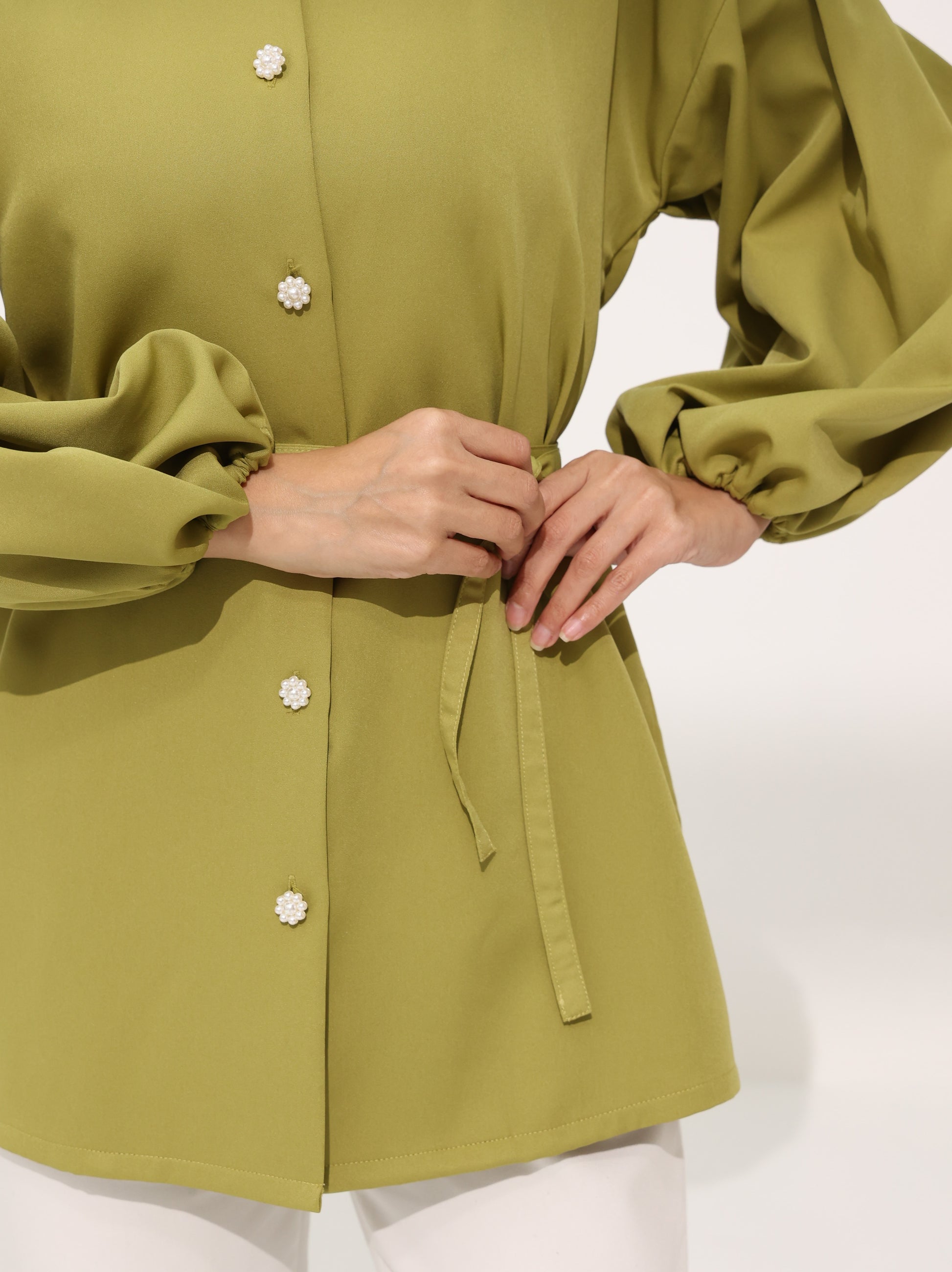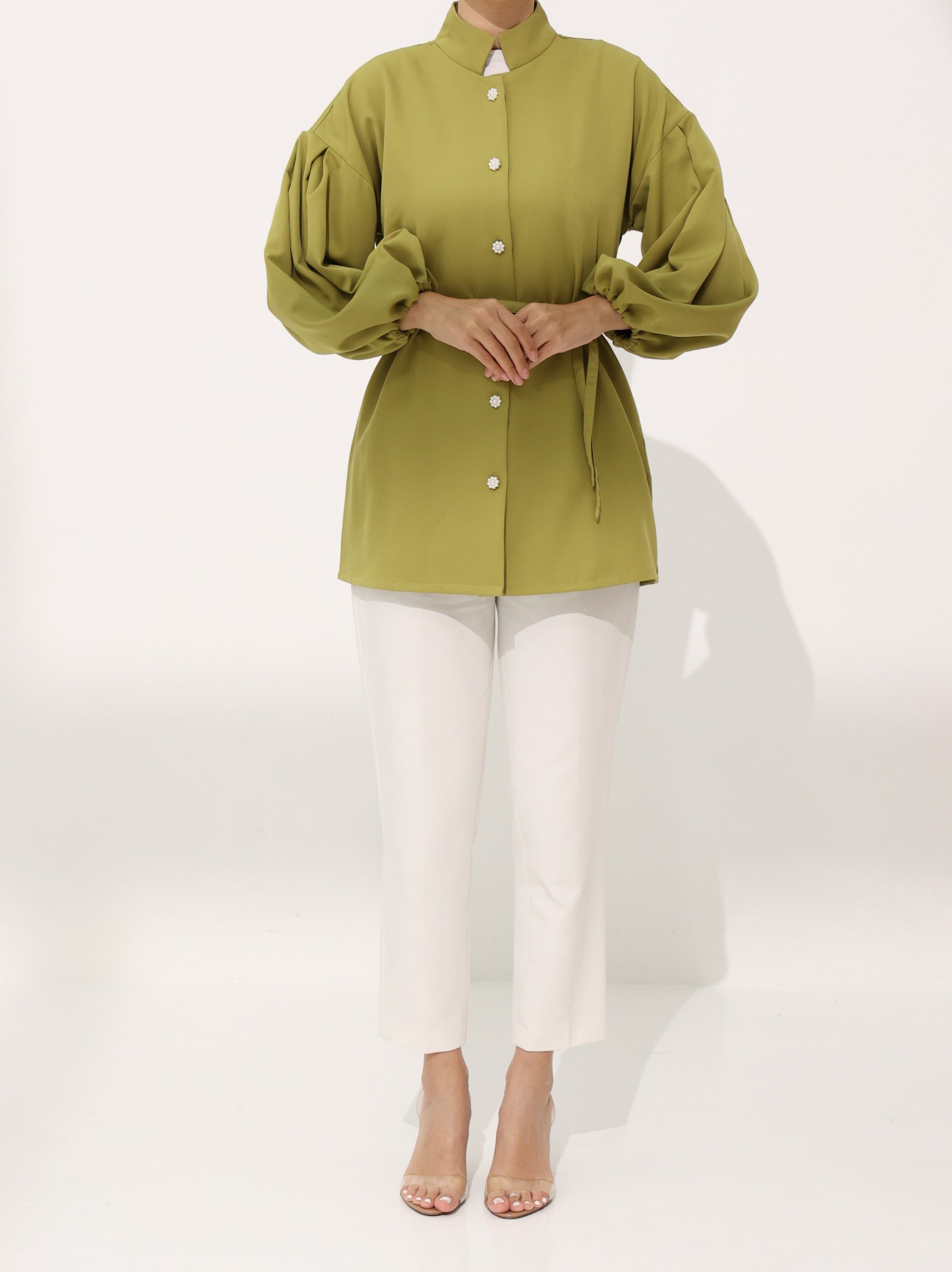 Green Roselle Puffy Shirt Top