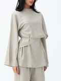 Set consists of top, pants, and detached belt